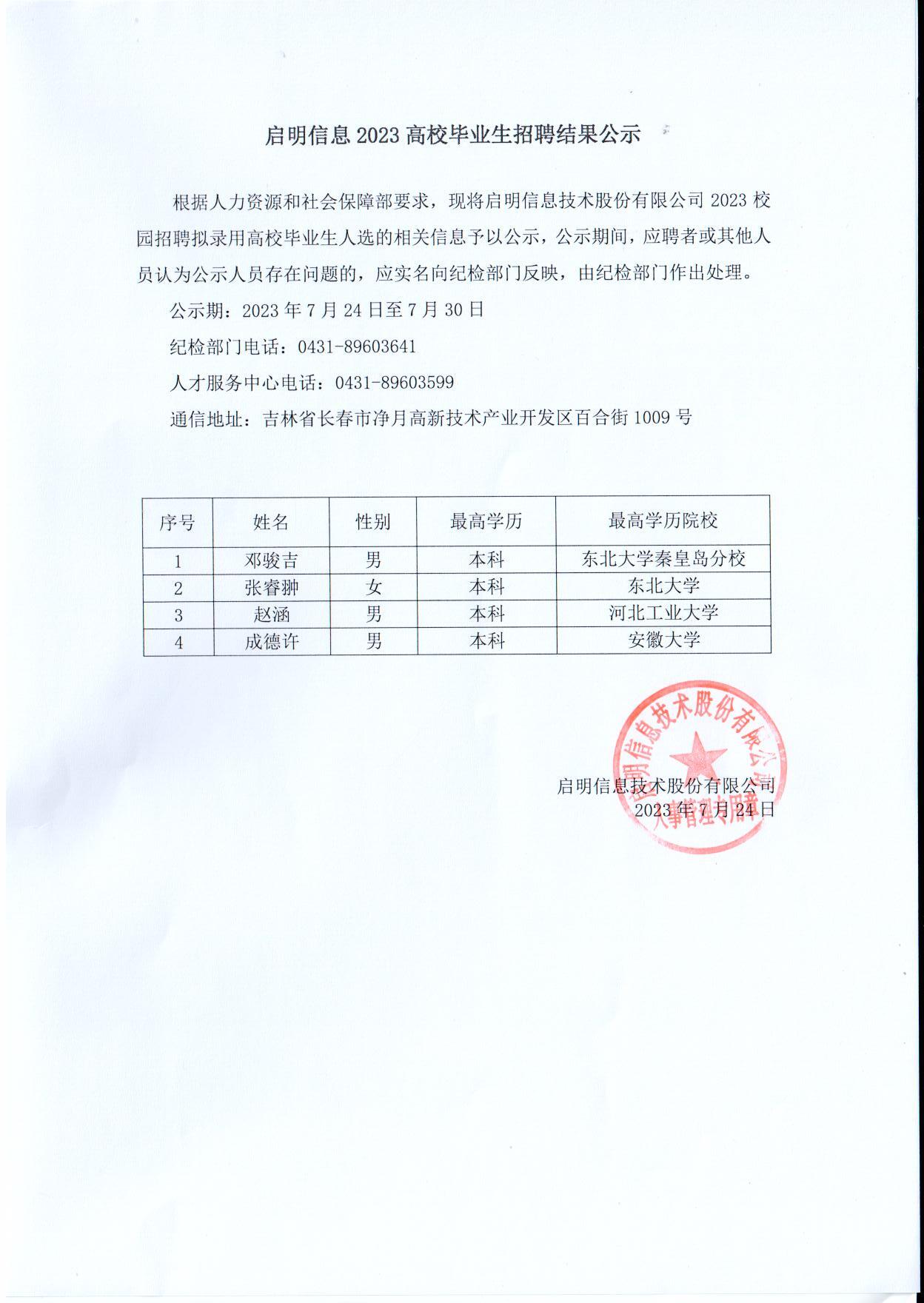 云顶国际集团信息2023高校畢業生招聘結果公示 (第二批)