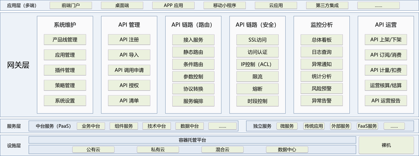 為(wei) 各係統或服務提供監控、限流、安全等管控功能,避免反複投資、重複建設
